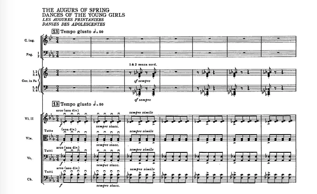 Quick story: my second time playing The Rite was for a workshop with Dr. Brian Blackwood, a Stravinsky scholar, using the orchestra to play examples during his lecture. Lots of fun but in a very enclosed space with 120 musicians. As we began the incredible “Dance of the Earth”, with requisite bicycle chains for the correct Tam Tam “whooshing” effect, and everybody on their game, the tempo kept getting faster and faster but controlled, and during the final bars with the woodwinds shreaking, I felt myself being levitated out of my seat. A strange feeling that never happened before or since. There was an insane amount of energy in a very small space.