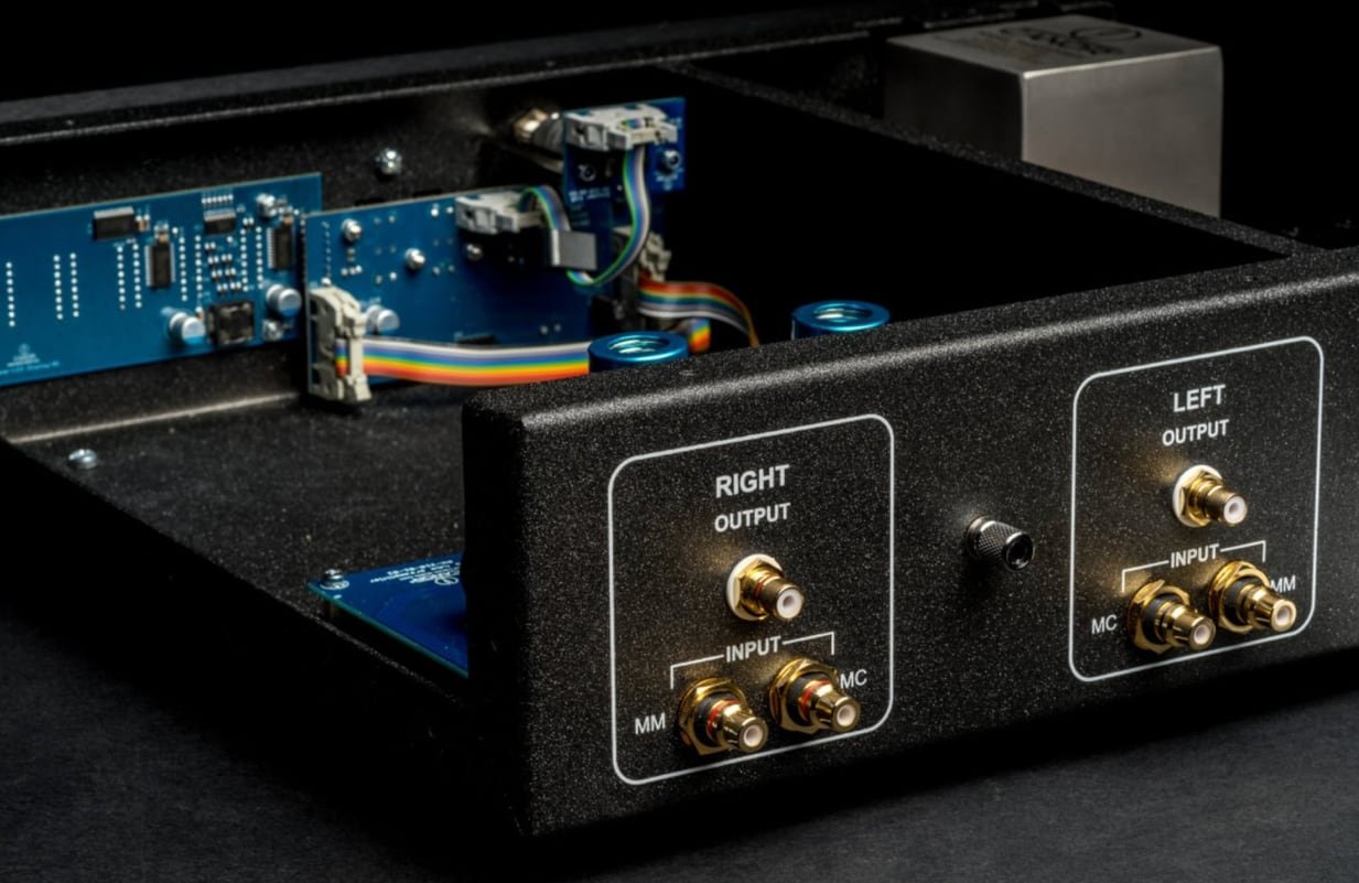 Moving coil cartridges are connected to the input using a high-quality Lundahl step-up transformer, and to ensure no hum, the transformer core is vacuum impregnated and enclosed in a special anti-vibration compound. The unit was silent in operation.