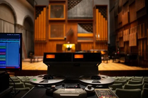 Direct tonal capture was handled by a pair of Neumann U47 microphones placed closer to the pipes, preserving weight, harmonic richness, and tonal color without sacrificing clarity. A final spot microphone was used judiciously to maintain definition during the most complex passages and ensure that musical lines remain intelligible, even at peak dynamic levels.